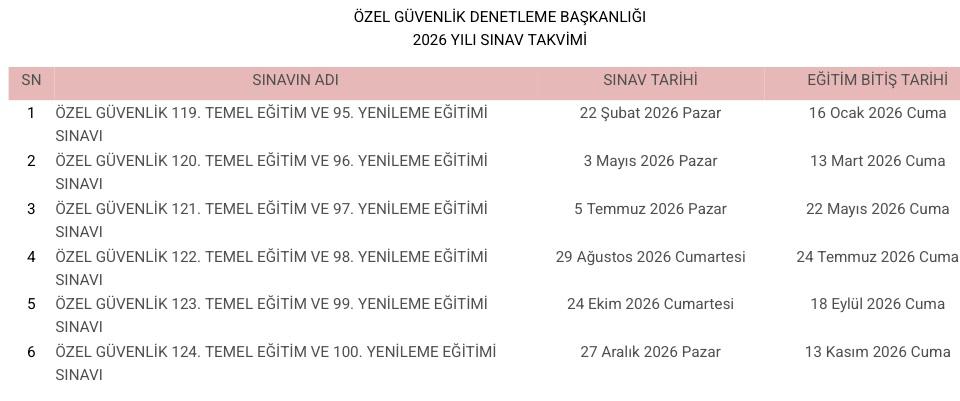 2026 Yılı Sınav Takvimi